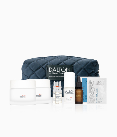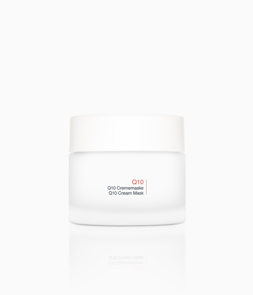 Q10 Creme: Aqua/Water, Decyl Oleate, Caprylic/Capric Triglyceride, Glyceryl Stearate, Sorbitol, PEG-100 Stearate, Propylene Glycol, Pentylene Glycol, Cetearyl Alcohol, Ubiquinone, Maris Aqua/Sea Water, Spirulina Maxima Extract, Algae Extract/Alaria Esculenta Extract, Saccharide Isomerate, Caviar Extract, Ostrea Shell Extract/Oyster Shell Extract, Maris Limus Extract/Sea Silt Extract, Sodium Hyaluronate, Simmondsia Chinensis (Jojoba) Seed Oil, Panthenol, Tocopherol, Allantoin, Tocopheryl Acetate, Lecithin, Carnitine, Algin, Biotin, Caprylyl Glycol, Agar, Sodium Hydroxide, Glycerin, Ethylhexylglycerin, Citric Acid, Dimethicone, Tetrasodium Glutamate Diacetate, Potassium Sorbate, Disodium EDTA, Trisodium EDTA, Lactic Acid, Phenoxyethanol, Xanthan Gum, Myristyl Alcohol, Benzyl Salicylate, Hydrogenated Palm Glycerides Citrate, Eugenol, Hexyl Cinnamal, Alpha-Isomethyl Ionone, Citronellol, Geraniol, Limonene, Benzyl Benzoate, Linalool, Parfum/Fragrance, Red 30 (CI 73360)